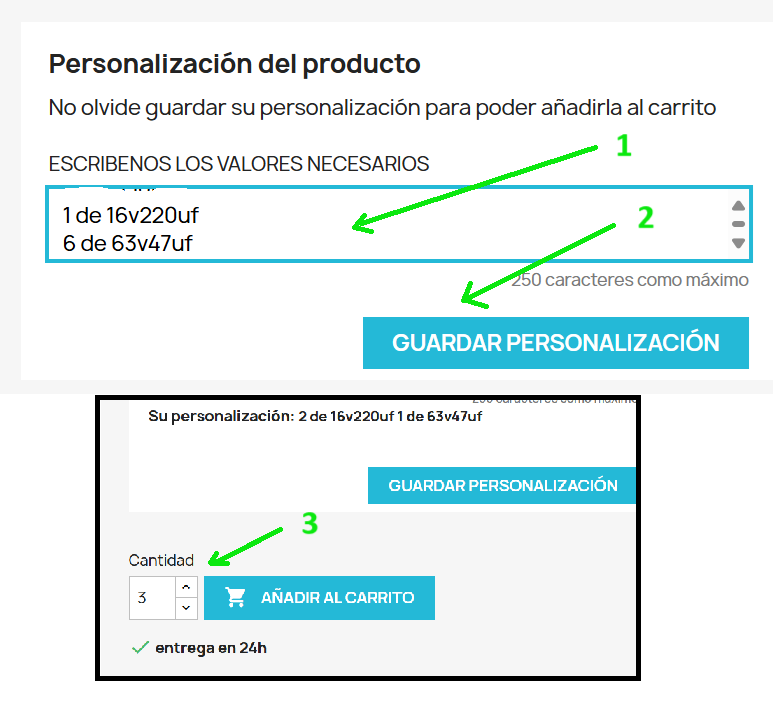 - escribe en personalización unidades y valores de cada producto (Ver en descripción los valores disponibles)